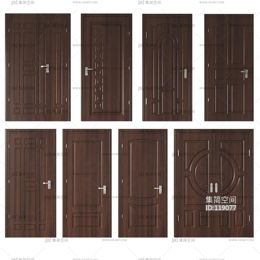 现代实木子母门 3d模型下载 [模型ID:119077]