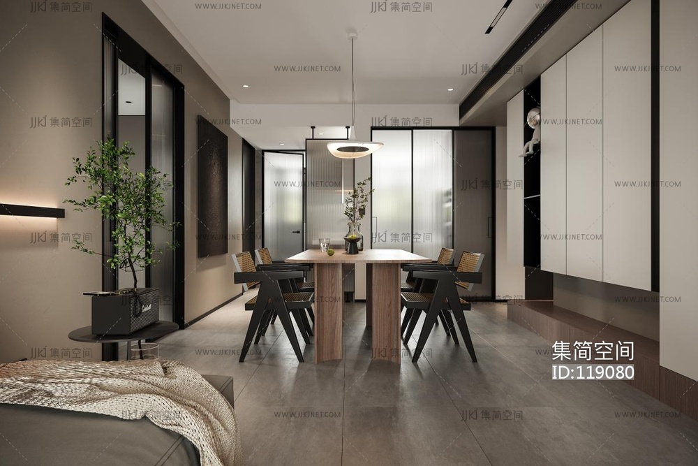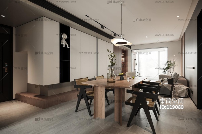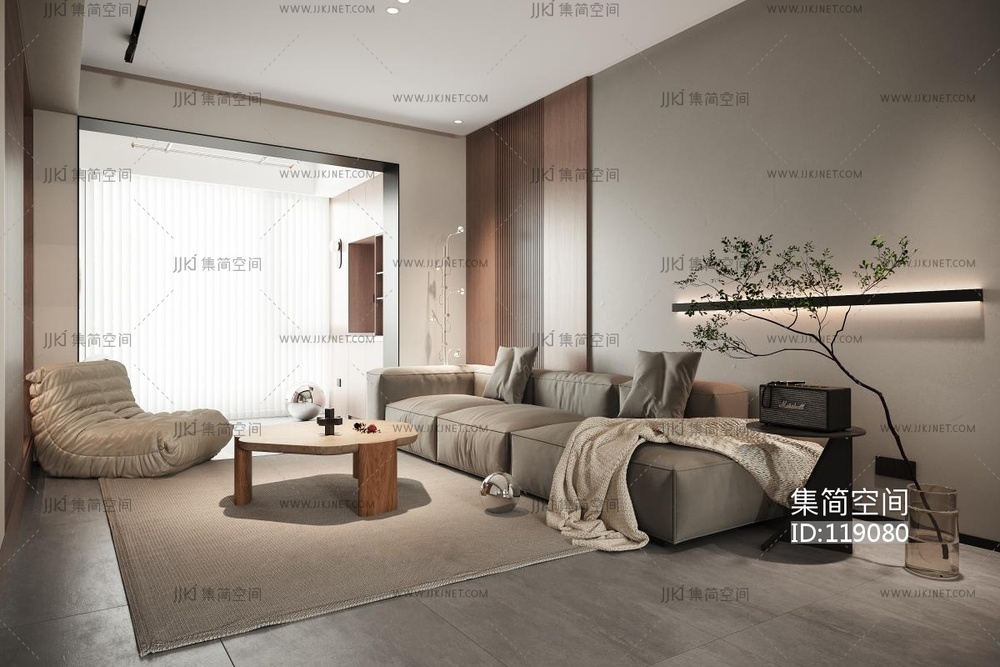 中古风客厅 沙发茶几组合 背景墙3d模型下载