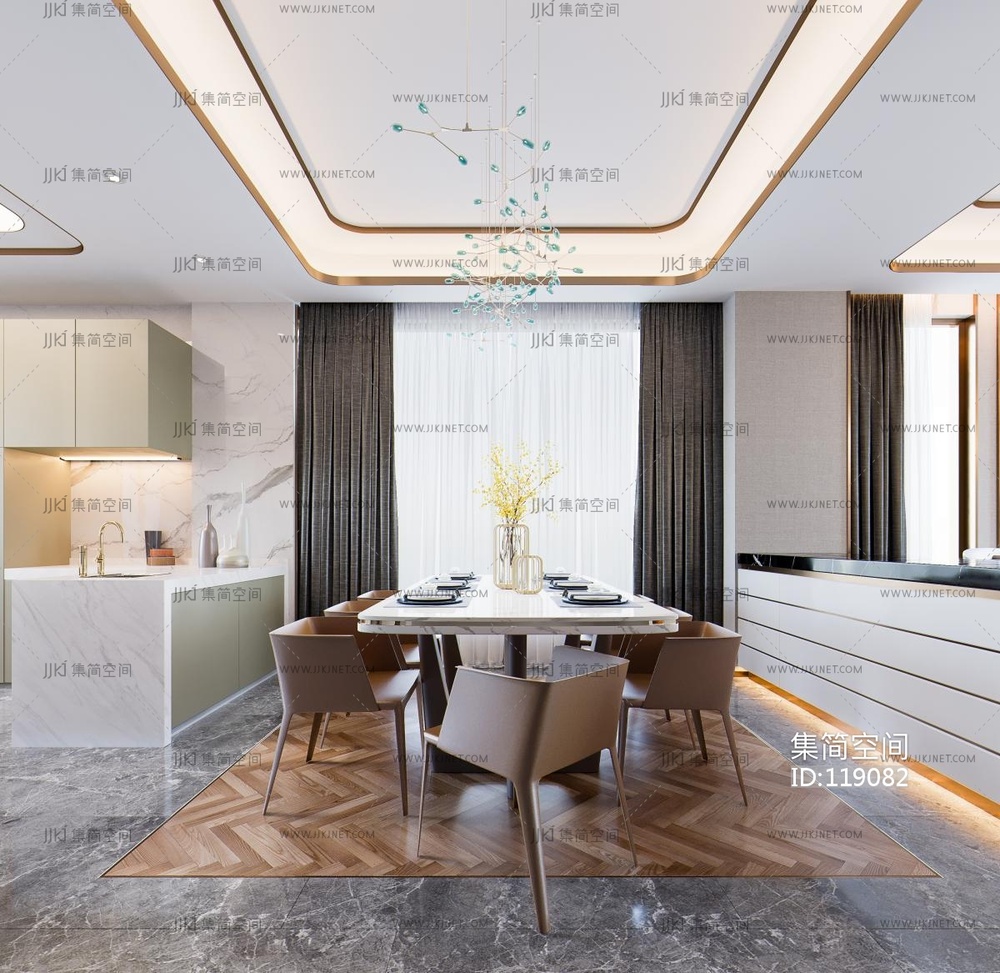 现代轻奢客餐厅 3d模型下载 [模型ID:119082]