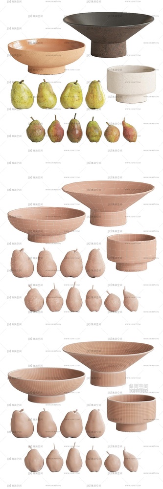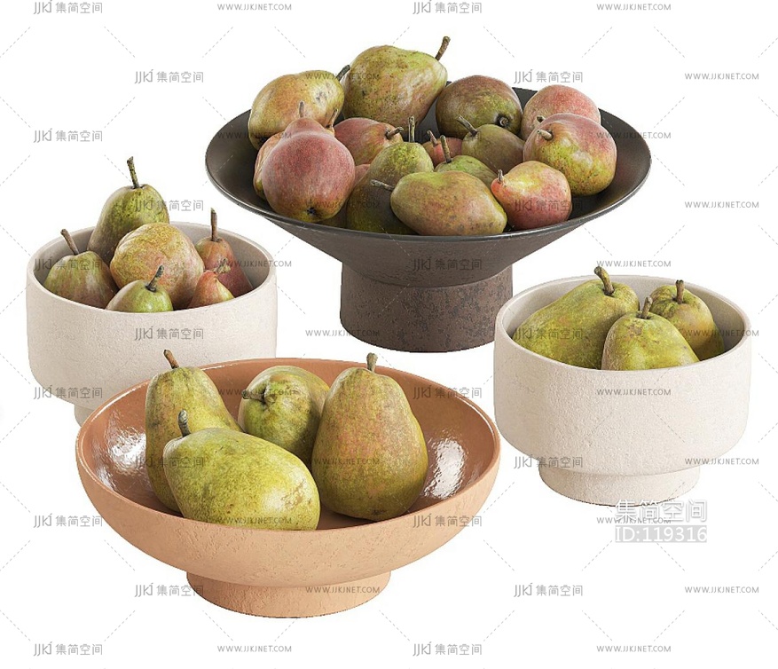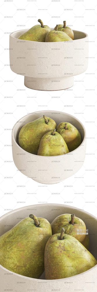 在陶土碗的梨 3d模型下载 [模型ID:119316]