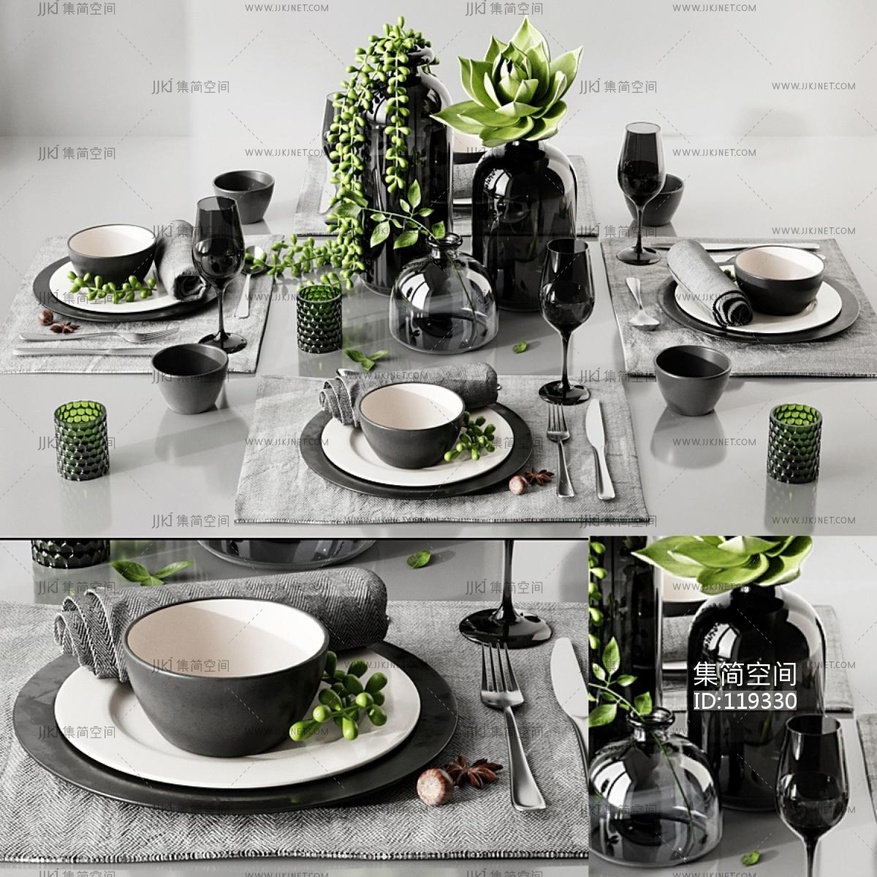 厨房用品_糖果罐_调味品_杯子3D酒杯酒瓶子模型3d模型下载