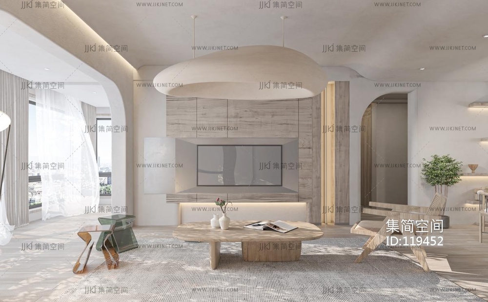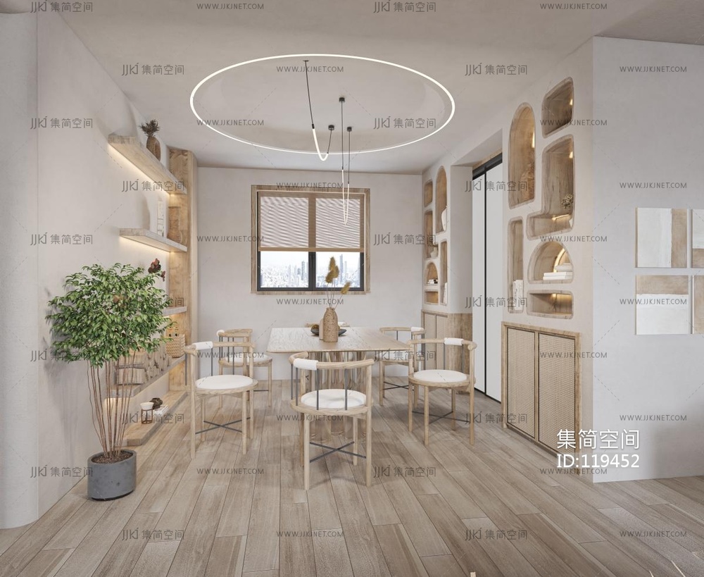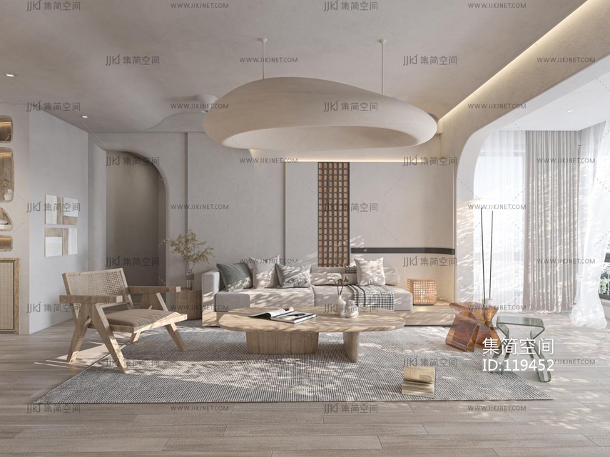 03侘寂风客厅餐厅厨房,沙发餐桌椅,凳子 3d模型下载 [模型ID:119452]