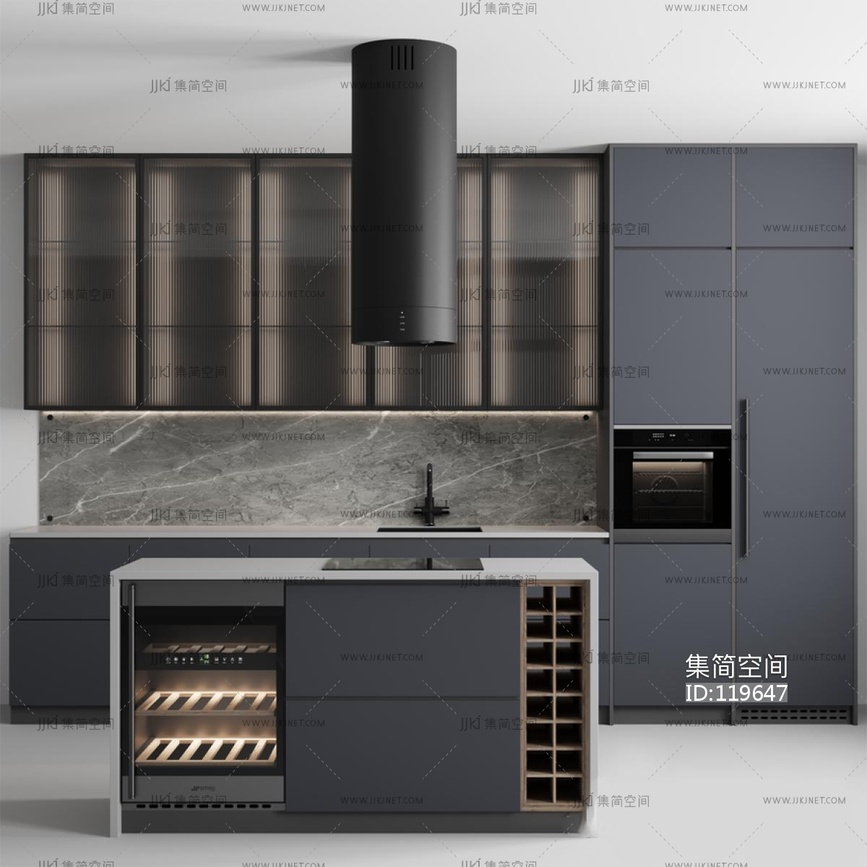 现代厨房_橱柜_冰箱3d模型下载