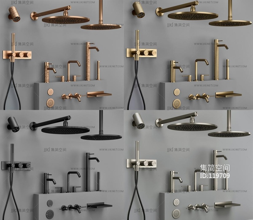 现代花洒水龙头淋浴头组合 3d模型下载 [模型ID:119709]