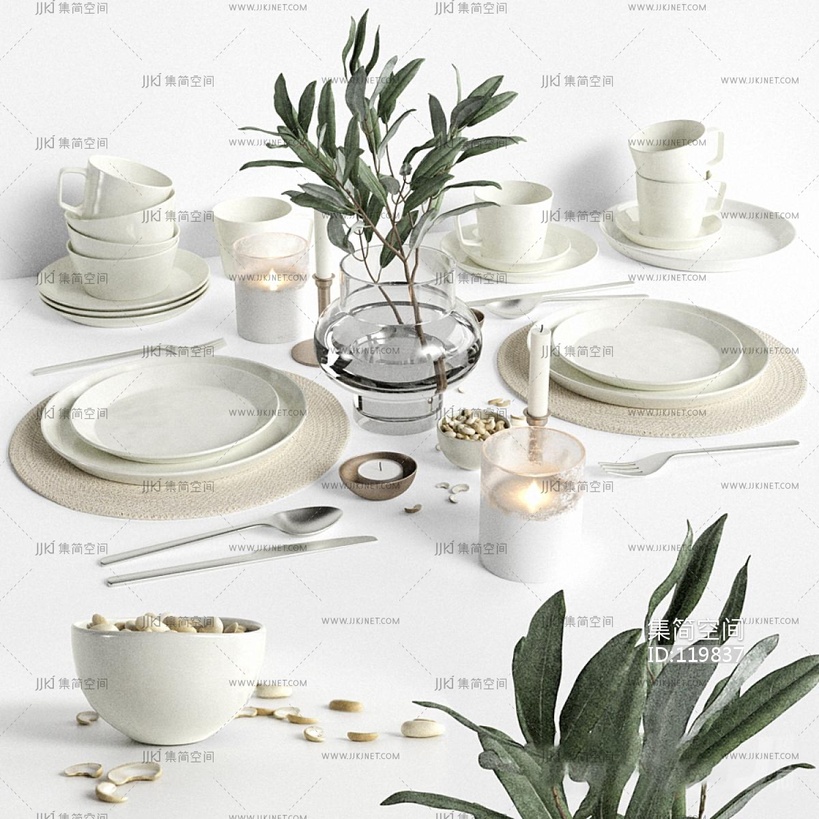 欧式厨房厨具餐具盘子水壶3d模型下载