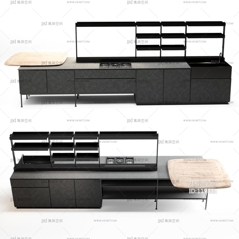 多边形厨房岛台 3d模型下载 [模型ID:119838]