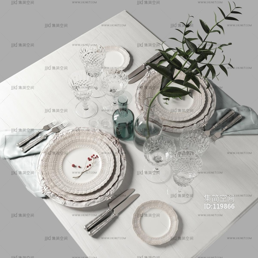 现代西餐杯碟餐具 3d模型下载 [模型ID:119866]