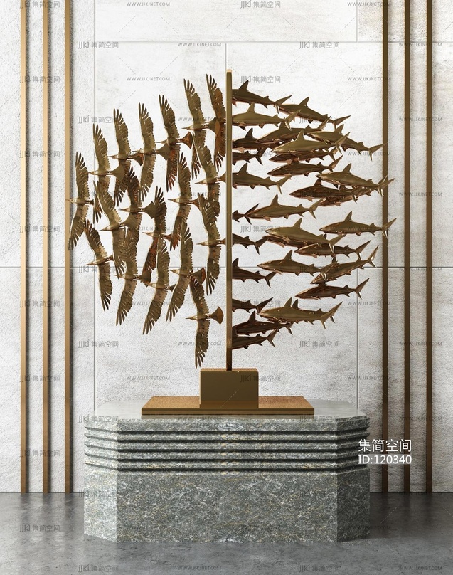 现代抽象飞鸟鱼群 3d模型下载 [模型ID:120340]