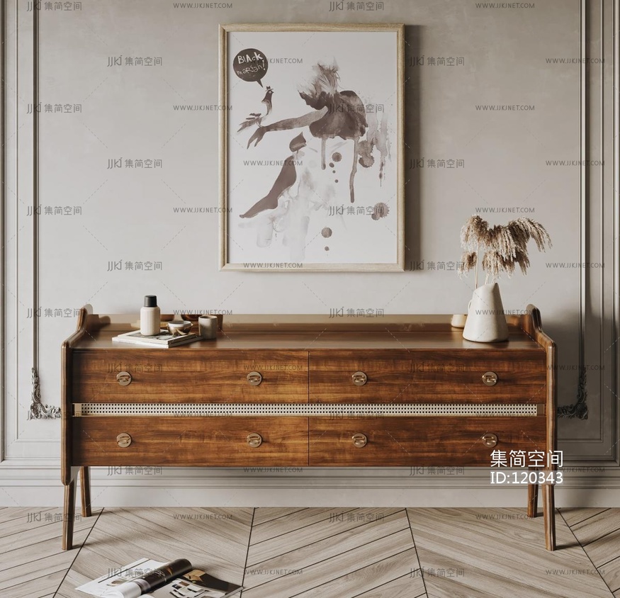 美式玄关柜摆台装饰画3D模型下载3d模型下载