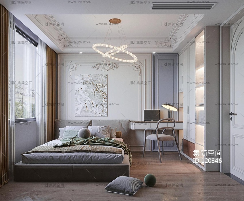 6法式中古家居卧室_主卧_飘窗卧室_高级灰卧室3D模型cr3d模型下载
