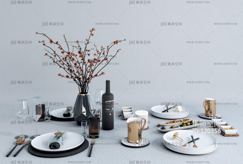 现代餐具餐盘 3d模型下载 [模型ID:120356]