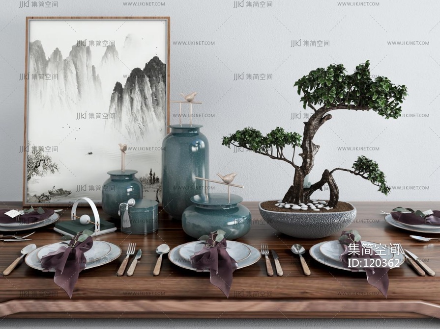 餐厅餐具摆件3d模型下载
