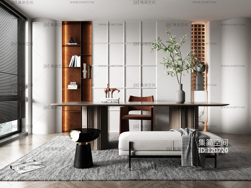 现代书房,书桌椅 3d模型下载 [模型ID:120720]