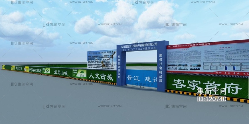 工地围挡,工地大门入口 3d模型下载 [模型ID:120740]