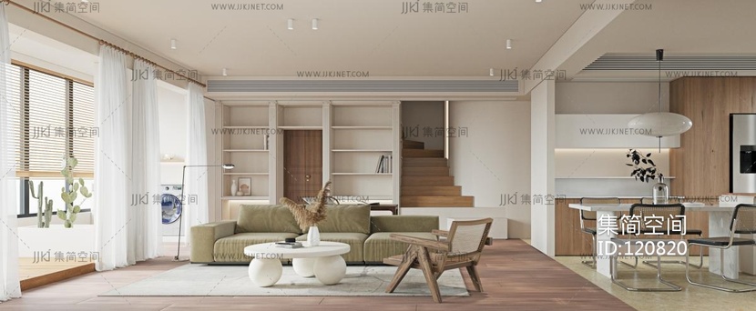 北欧客餐厅,阳台,厨房,现代沙发 3d模型下载 [模型ID:120820]