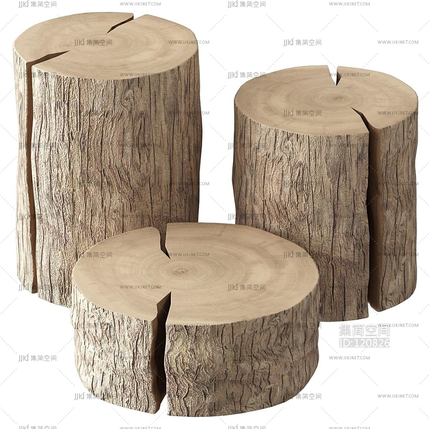 现代原木木凳 3d模型下载 [模型ID:120826]
