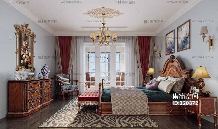 美式古典卧室 3d模型下载 [模型ID:120872]