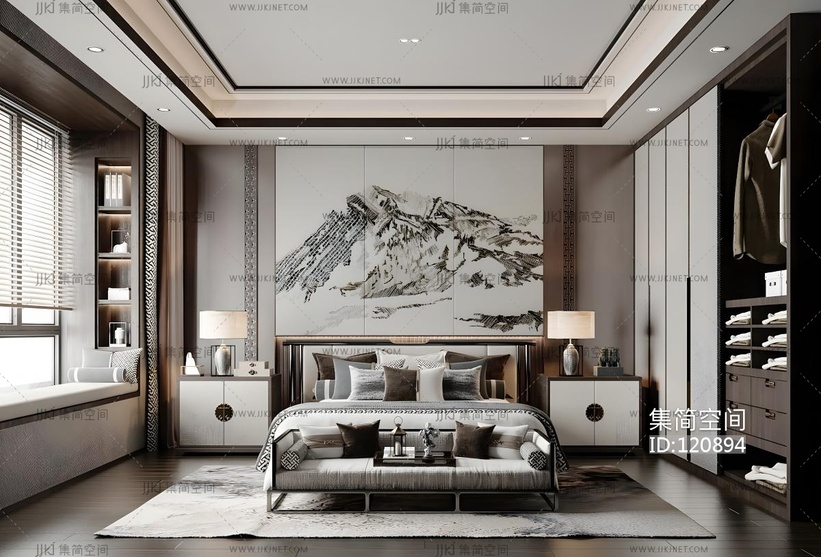 06新中式卧室 3d模型下载 [模型ID:120894]