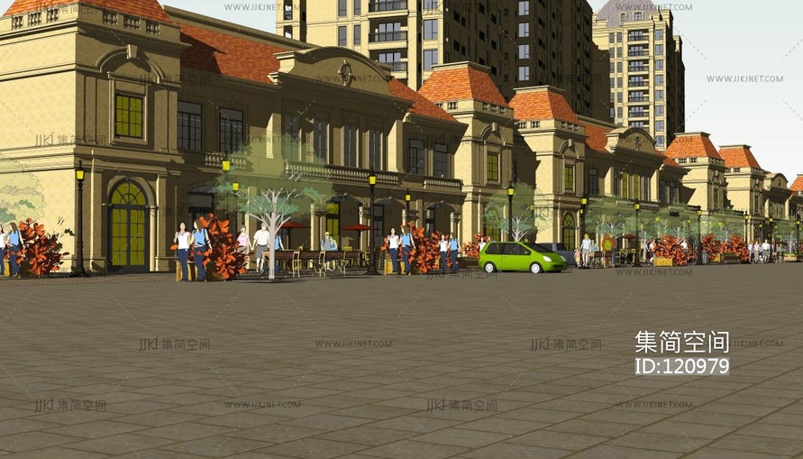 建筑 商业街,欧式法式商业街街区 su草图模型下载 [模型ID:120979]