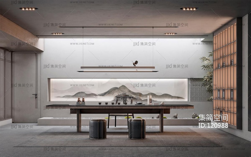 现代新中式茶室茶桌椅 3d模型下载 [模型ID:120988]