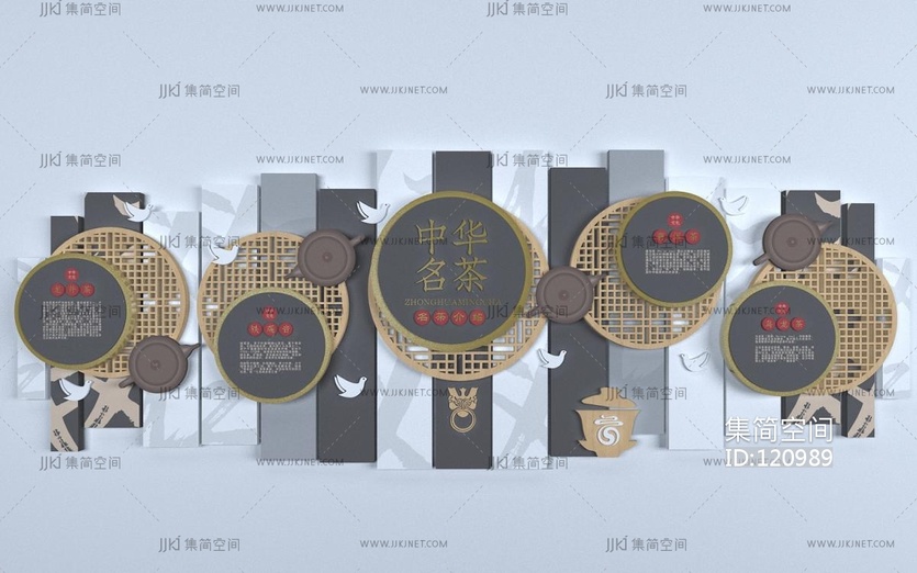 02-茶文化墙 文化墙 3d模型下载 [模型ID:120989]