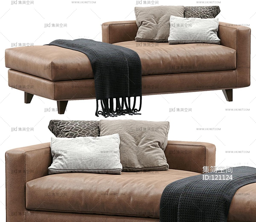 14皮革贵妃椅,卧榻贵妃榻, 3d模型下载 [模型ID:121124]