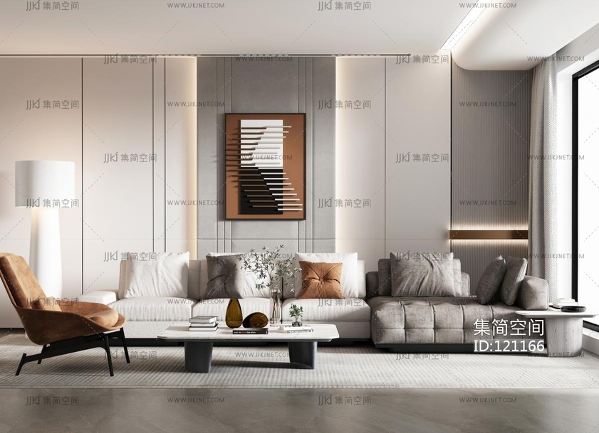 现代客厅,转角沙发 3d模型下载 [模型ID:121166]