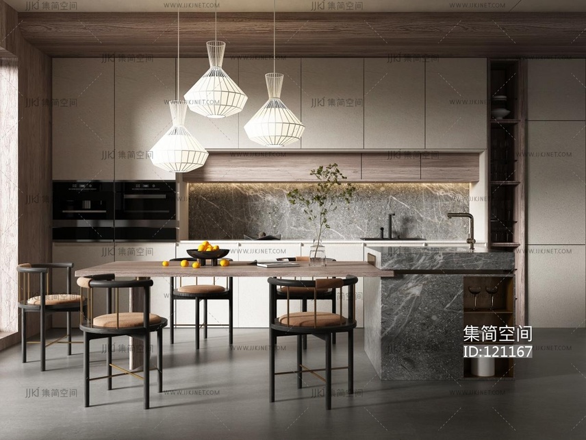现代餐厅厨房,岛台 3d模型下载 [模型ID:121167]