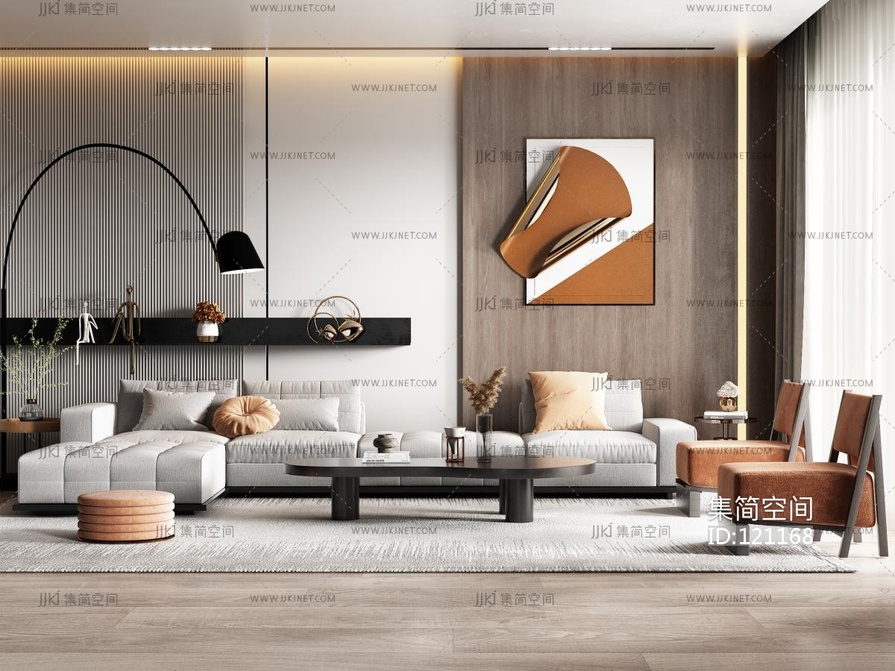 现代客厅,转角沙发单人椅子沙发茶几 3d模型下载 [模型ID:121168]