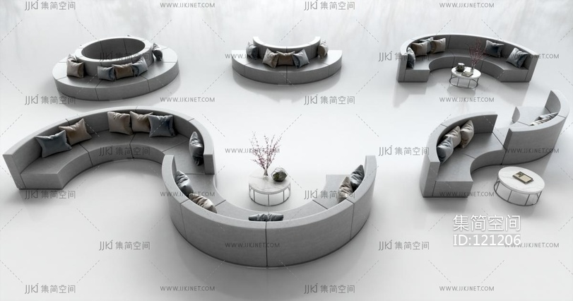 弧形异形圆形拼接沙发等候座椅公共座椅 3d模型下载 [模型ID:121206]