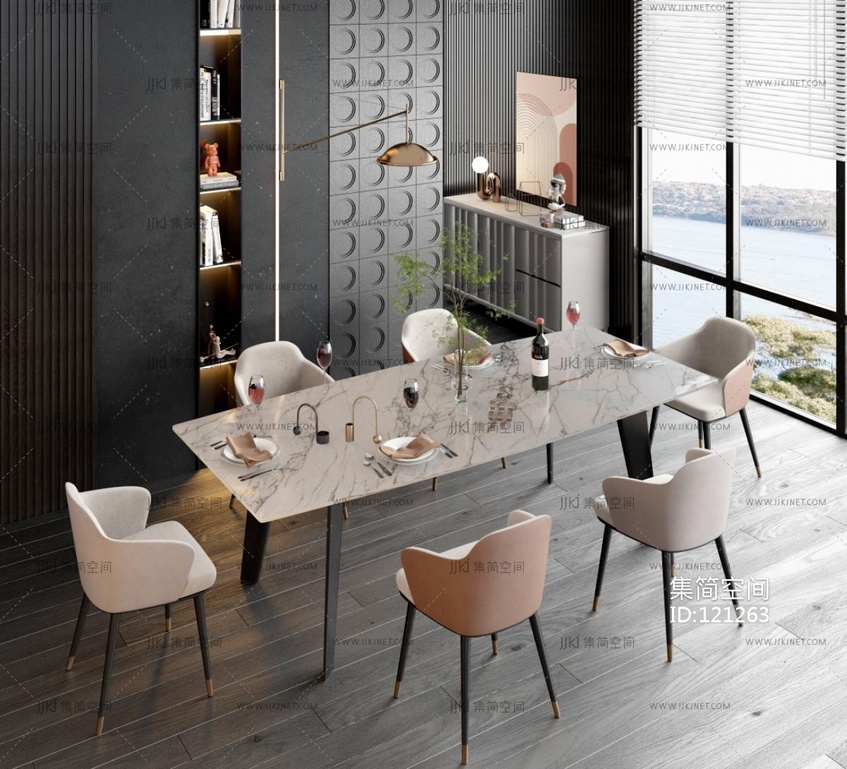 轻奢岩板餐桌椅组合 3d模型下载 [模型ID:121263]
