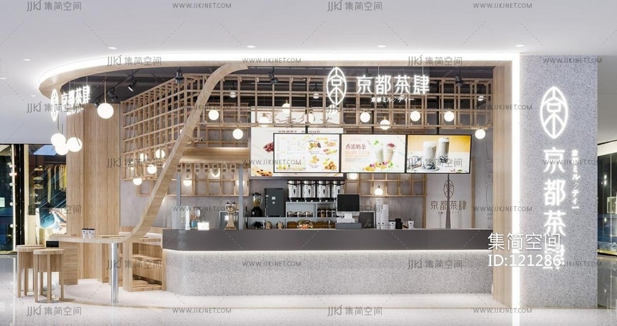 新中式奶茶店,咖啡机,操作台,收银后 3d模型下载 [模型ID:121286]