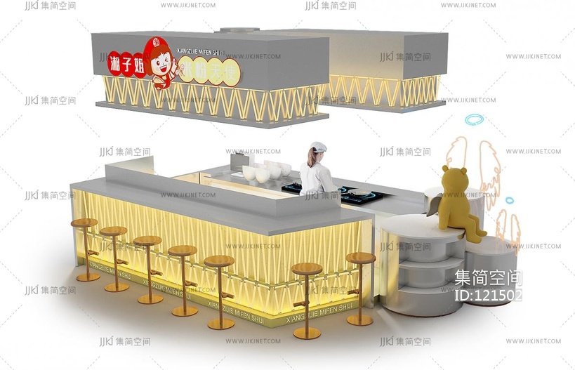 现代小吃快餐餐厅米粉店岛台中岛操作台档口 3d模型下载 [模型ID:121502]