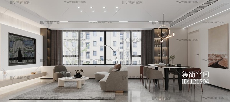 现代客餐厅,餐桌椅沙发 3d模型下载 [模型ID:121504]