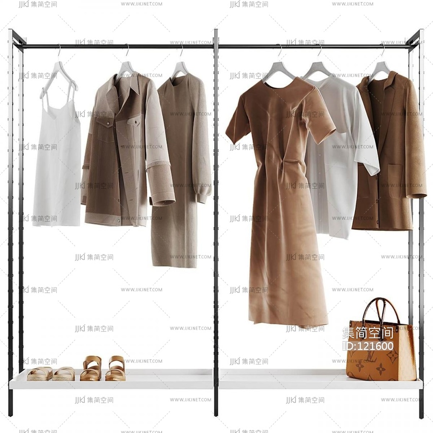 现代服装店衣架衣服展架女包皮包 3d模型下载 [模型ID:121600]