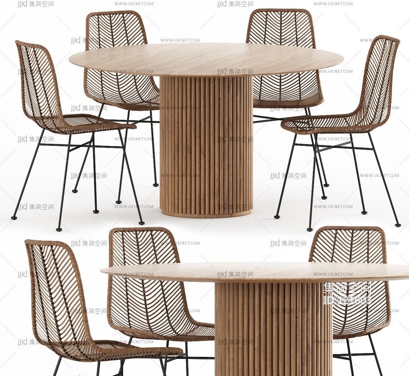 01现代藤编编织圆形餐桌椅组合 3d模型下载 [模型ID:121603]