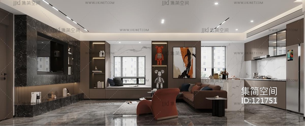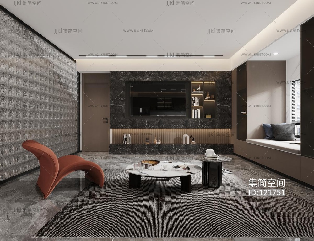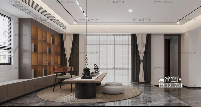 现代轻奢客餐厅新中式茶室会客厅 3d模型下载 [模型ID:121751]