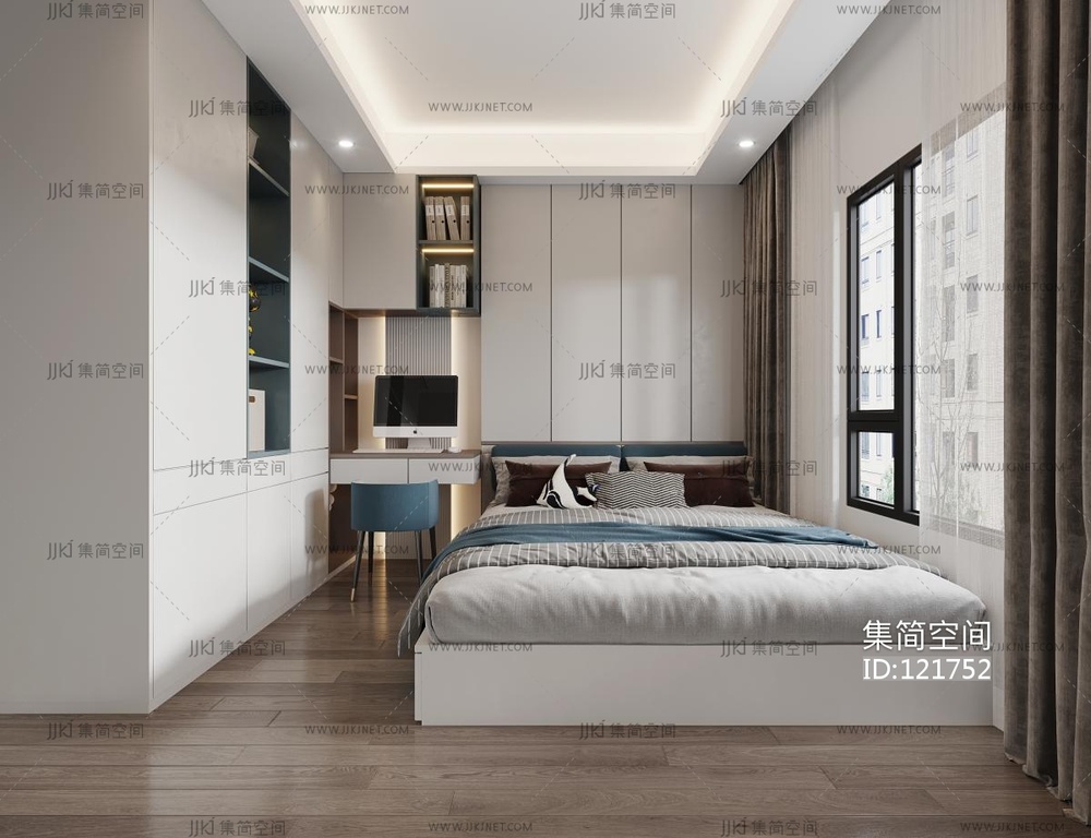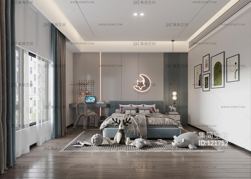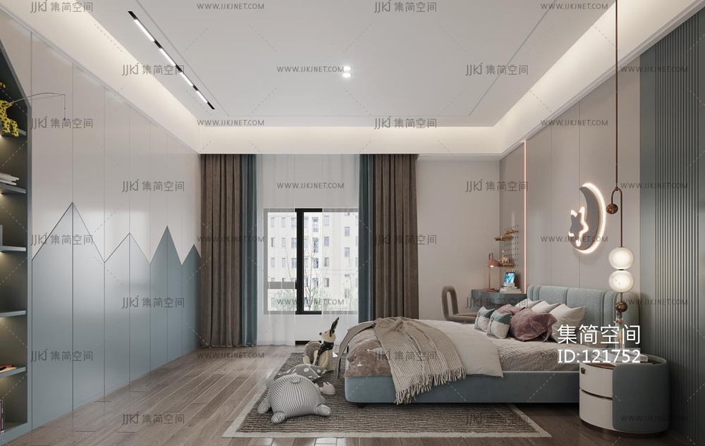 07-现代儿童房,儿童床学习桌-3d模型下载