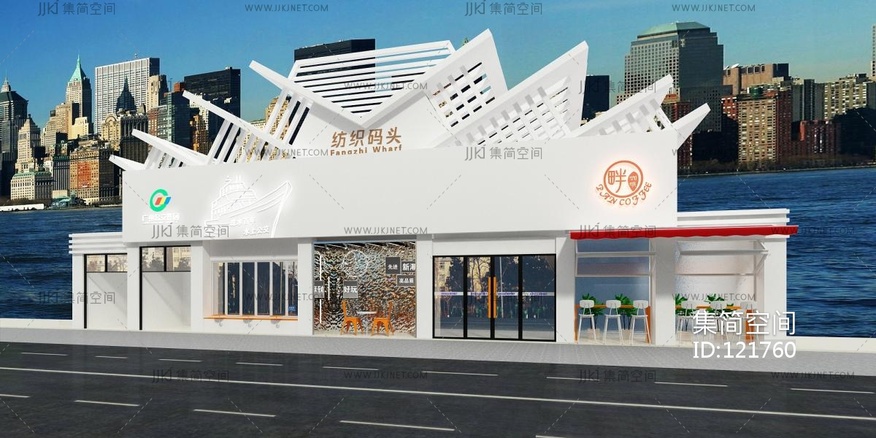 现代甜品店咖啡店餐厅门头3d模型下载