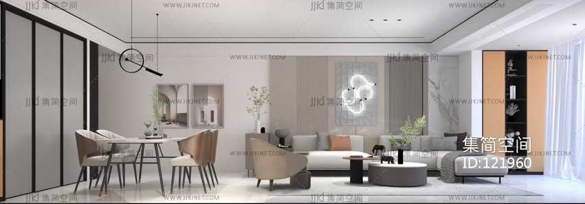 现代客厅,餐厅 3d模型下载 [模型ID:121960]