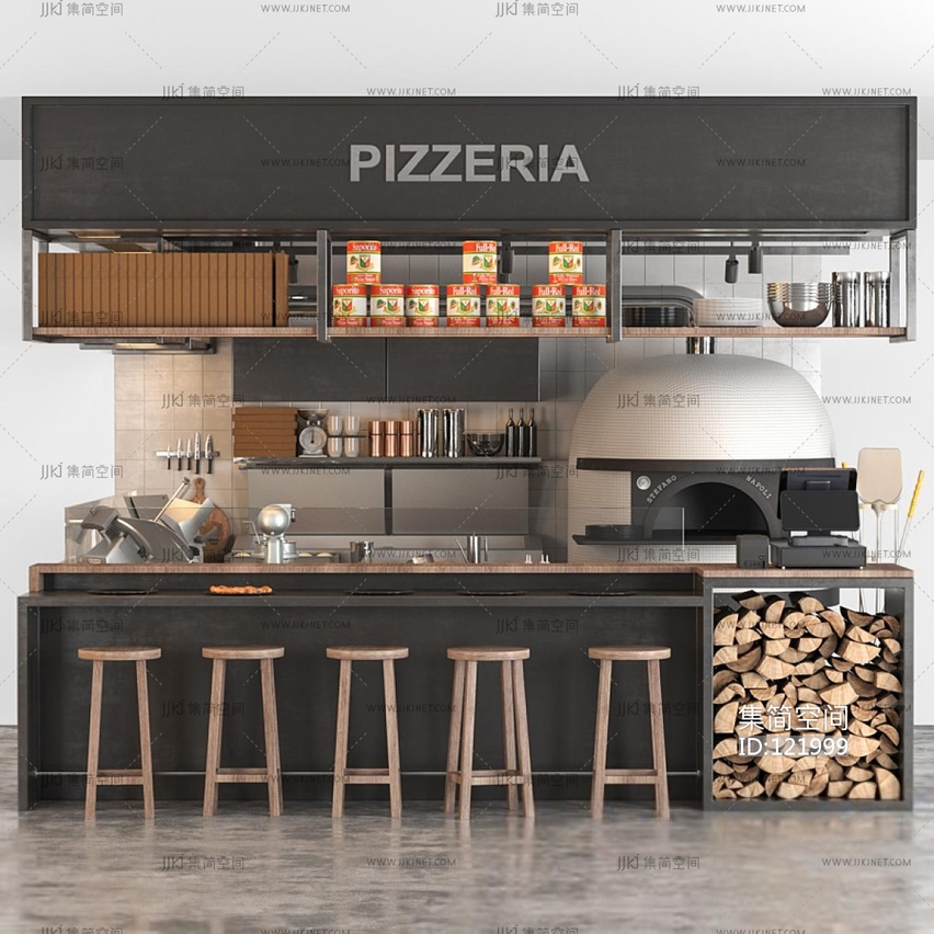 现代披萨店吧台操作台 su草图模型下载 [模型ID:121999]