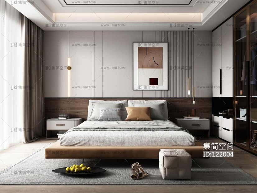 现代卧室,双人床,衣柜,床头柜 3d模型下载 [模型ID:122004]