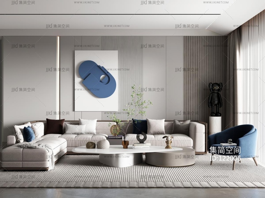 现代沙发茶几组合,转角沙发 3d模型下载 [模型ID:122006]