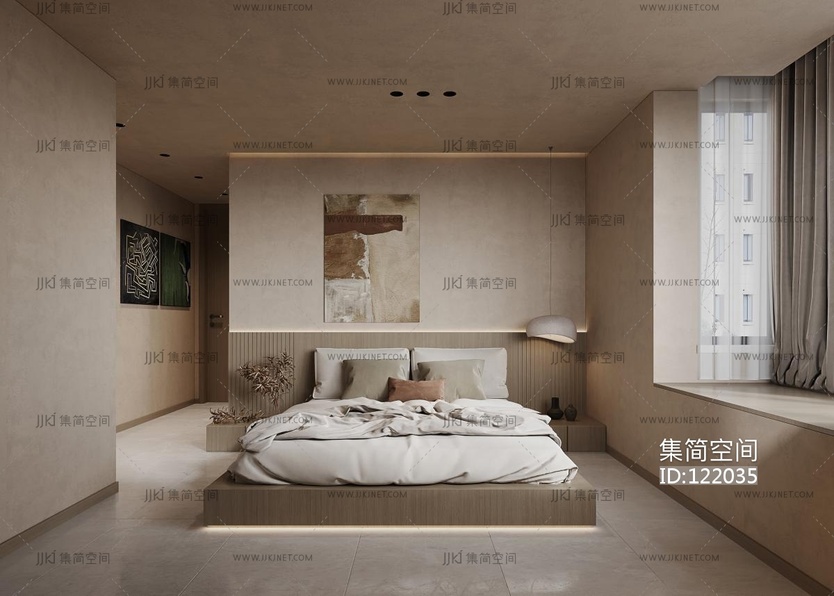 侘寂风卧室,双人床 3d模型下载 [模型ID:122035]