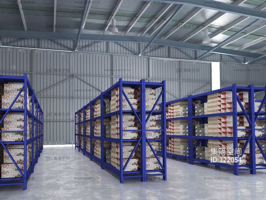 现代仓库厂房货架 3d模型下载 [模型ID:122054]