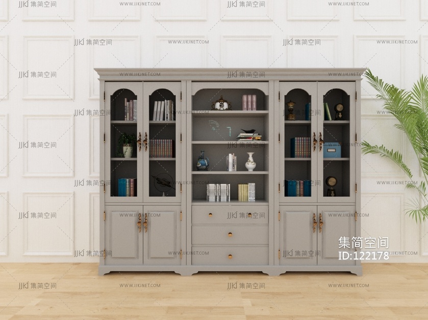 01欧式书柜,美式法式书柜 3d模型下载 [模型ID:122178]