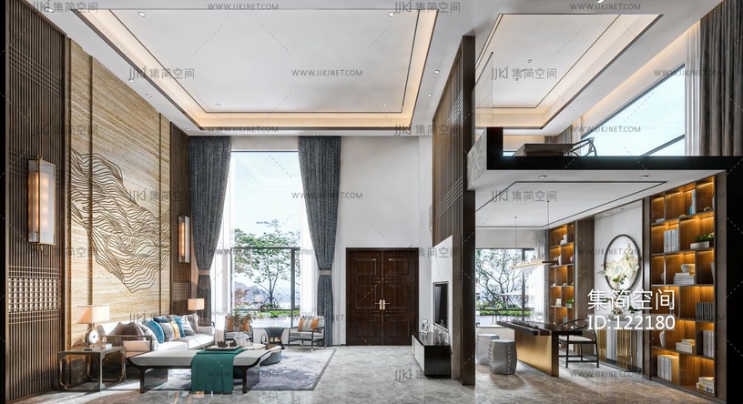 02新中式客厅书房 3d模型下载 [模型ID:122180]