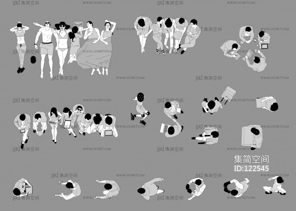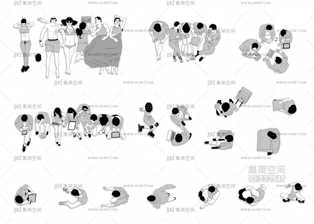 200个精选国外CAD俯视人物38个PSD分层人物素材 [ID:122545]