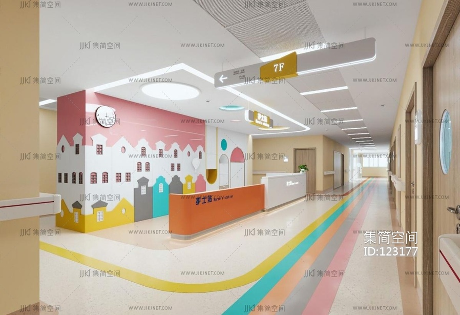 现代儿童医院护士站走廊 3d模型下载 [模型ID:123177]