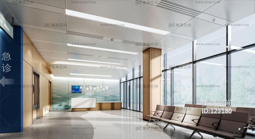 现代医院急诊等候室,服务台,等候座椅 3d模型下载 [模型ID:123180]